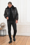 This leather bomber jacket of lamb with A polyester lining and padding is very comfortable.