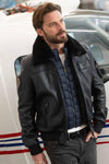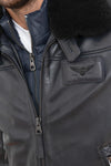 Sheep fur collar detachable with buttons, which once removed can be attached to the lining. reveals a leather shirt collar.