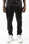 In their black color, they have a size Elastic ribbed with drawstring. The side pockets match, and two reptile skin effect bands adorn each side. The brand badge is plated on the back. on the left leg. Diamonds formed by the brand name surround the logo, flocking present over the entire surface of these pants.