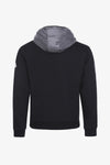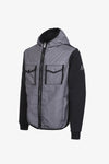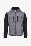 We find a hybrid hood integrating the function of the collar and equipped with ;a tightening link. The clothing constantly juggles between black and gray. The silver metal closure is surrounded by a decorative border. black over its entire length, matching the black of the long sleeves and contrasting with the gray of the central part. The 2 chest pockets are attached. Snap flaps and feature black borders on a gray background. The stylized H of Horspist is present on the left arm, while the side right is marked by the presence of a logo badge. The cuffs are at the waist. stretch ribbing.
