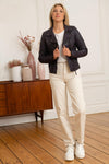 It is a close-fitting cut. The product will be fitted at the waist and the sleeves will be quite tight.<br><br> This type of jacket will be worn more easily open due to its fitted appearance.<br><br> The Slimfit cut is the most widespread among leather clothing, it is the fashionable cut!
