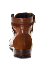 The Redskins Nitro Cognac men's shoe boots combine style and comfort. Made from cowhide leather, this model has been designed to last. This pair of Redskins shoes has a beautiful finish with contrasting stitching and inserts with the brand logo. Its aged appearance combined with a play on materials gives it a trendy and elegant style. The brand name on the front makes it an even more original model. Practical, this pair of men's square heel boots has a lace fastening at the front and a zip fastening on the sides, which allows you to put your shoes on and take them off more easily. These men's leather boots go with all styles. They go very well with jeans or chino pants.