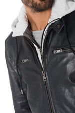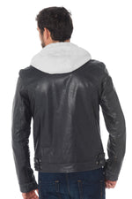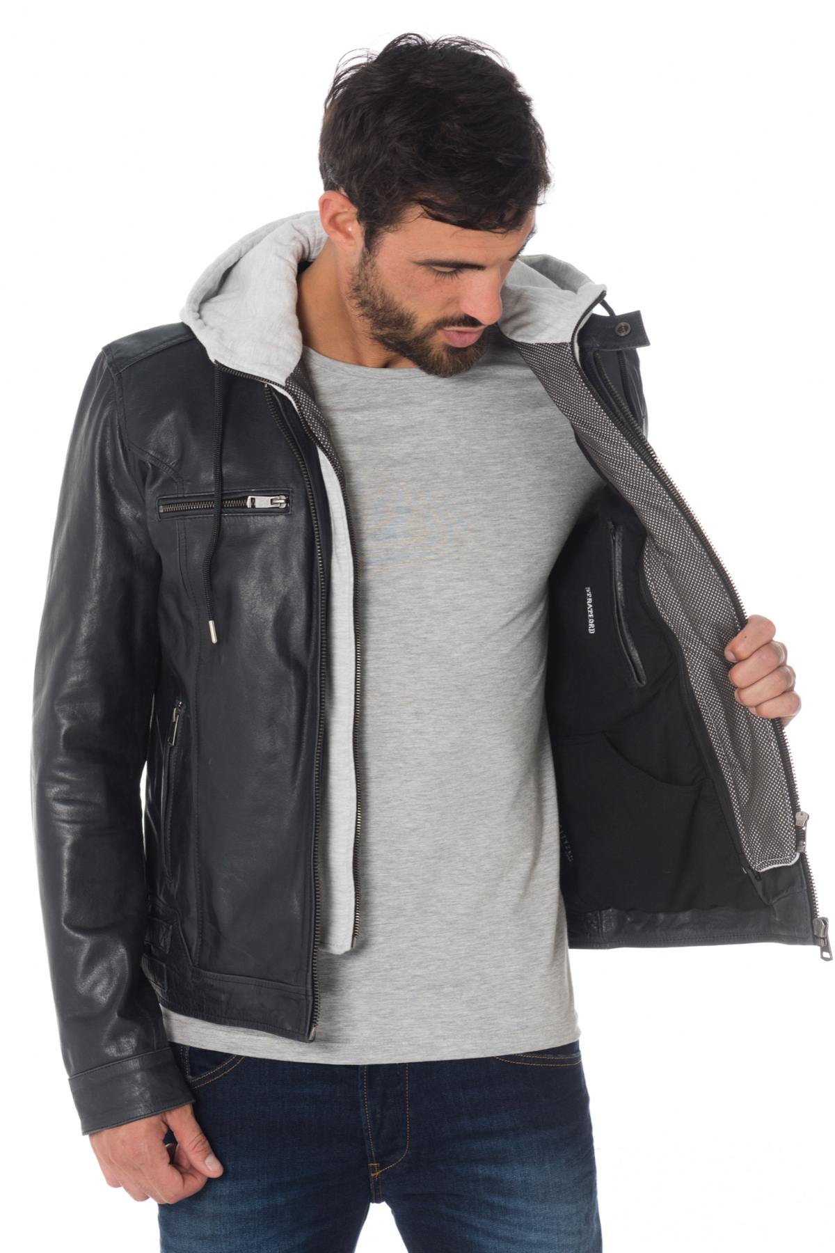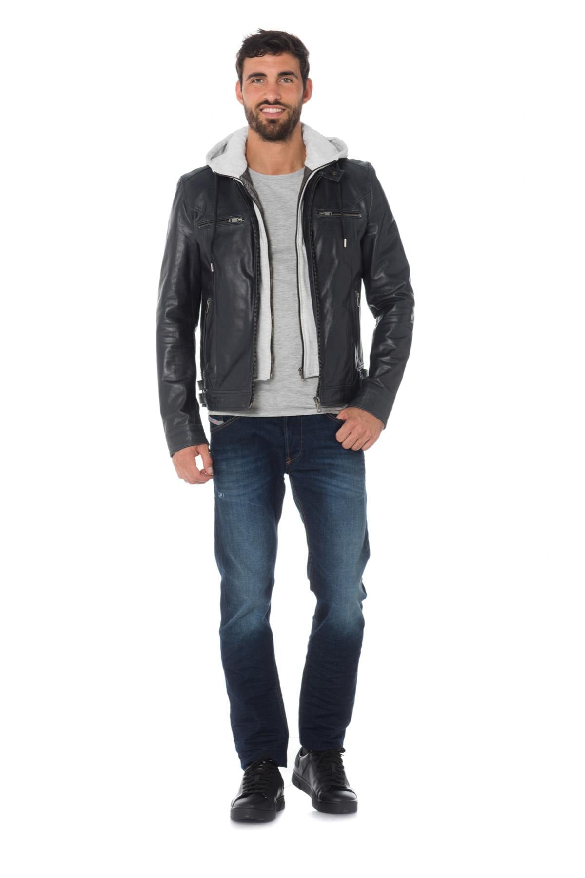 This buffalo leather model has a sweatshirt effect hood mounted on a removable facing with a zipper allows you to go from one style to another; the other in an instant.