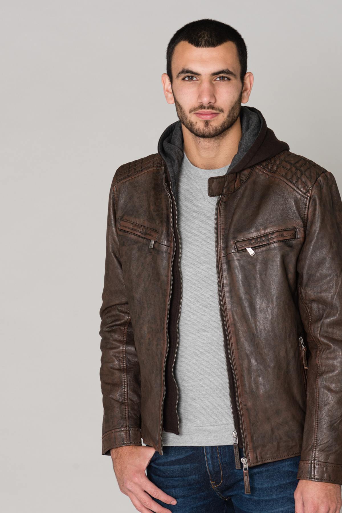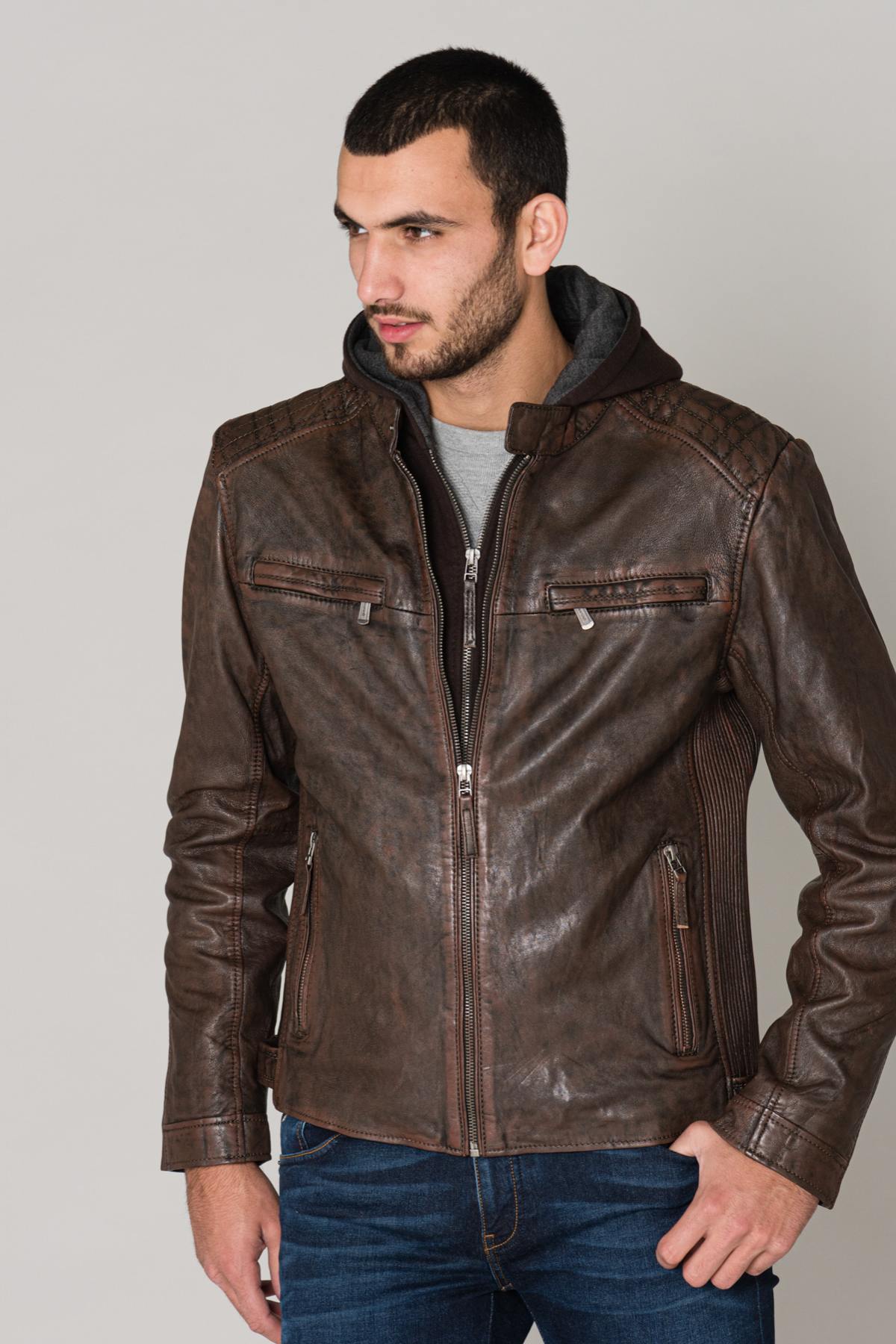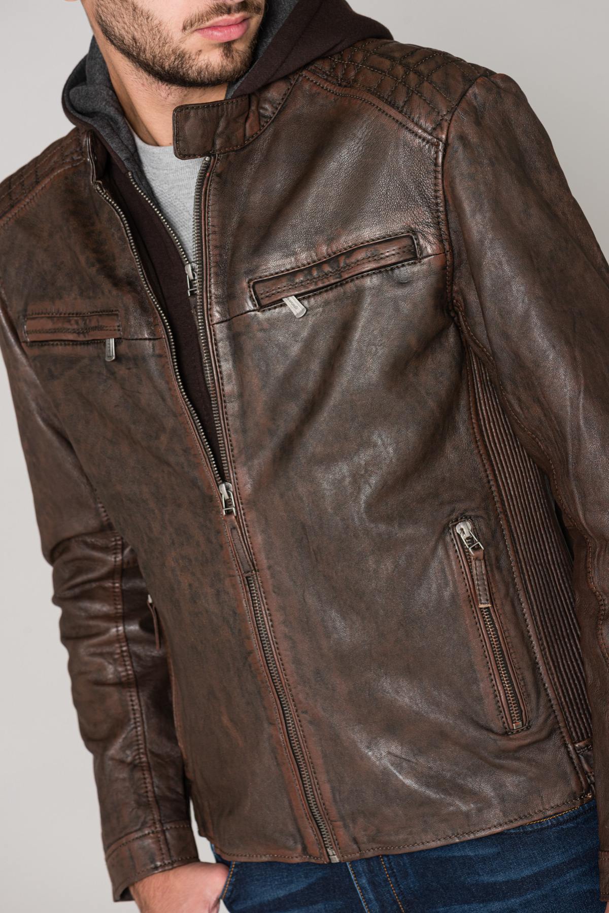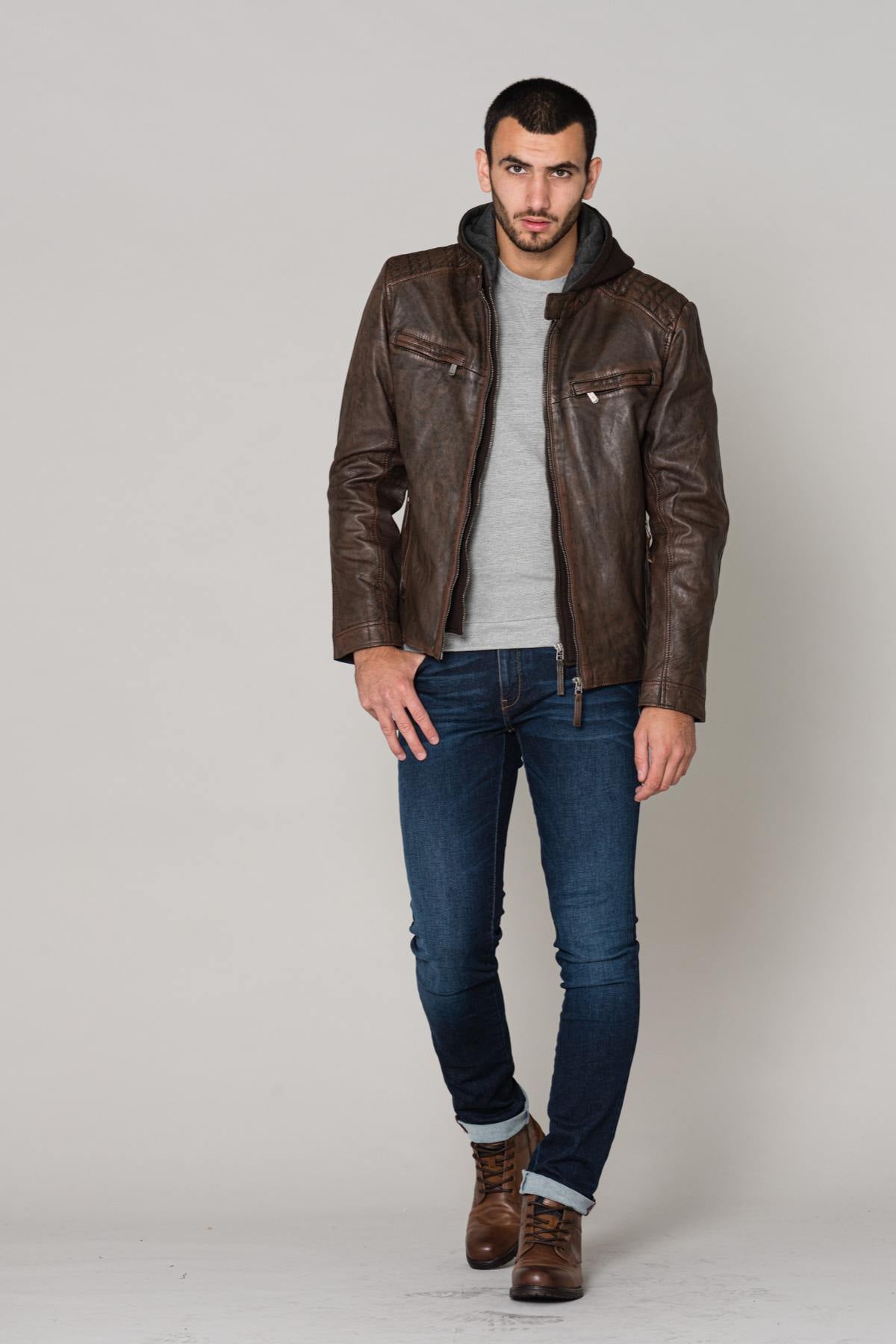 The FOG LANTV BROWN is a sheepskin leather jacket with vegetable tanning for respect for the environment.