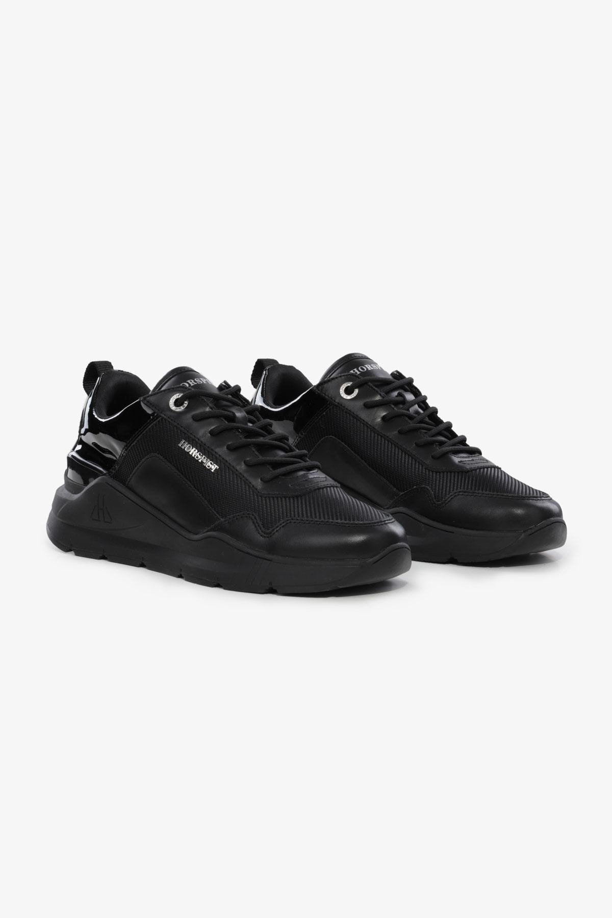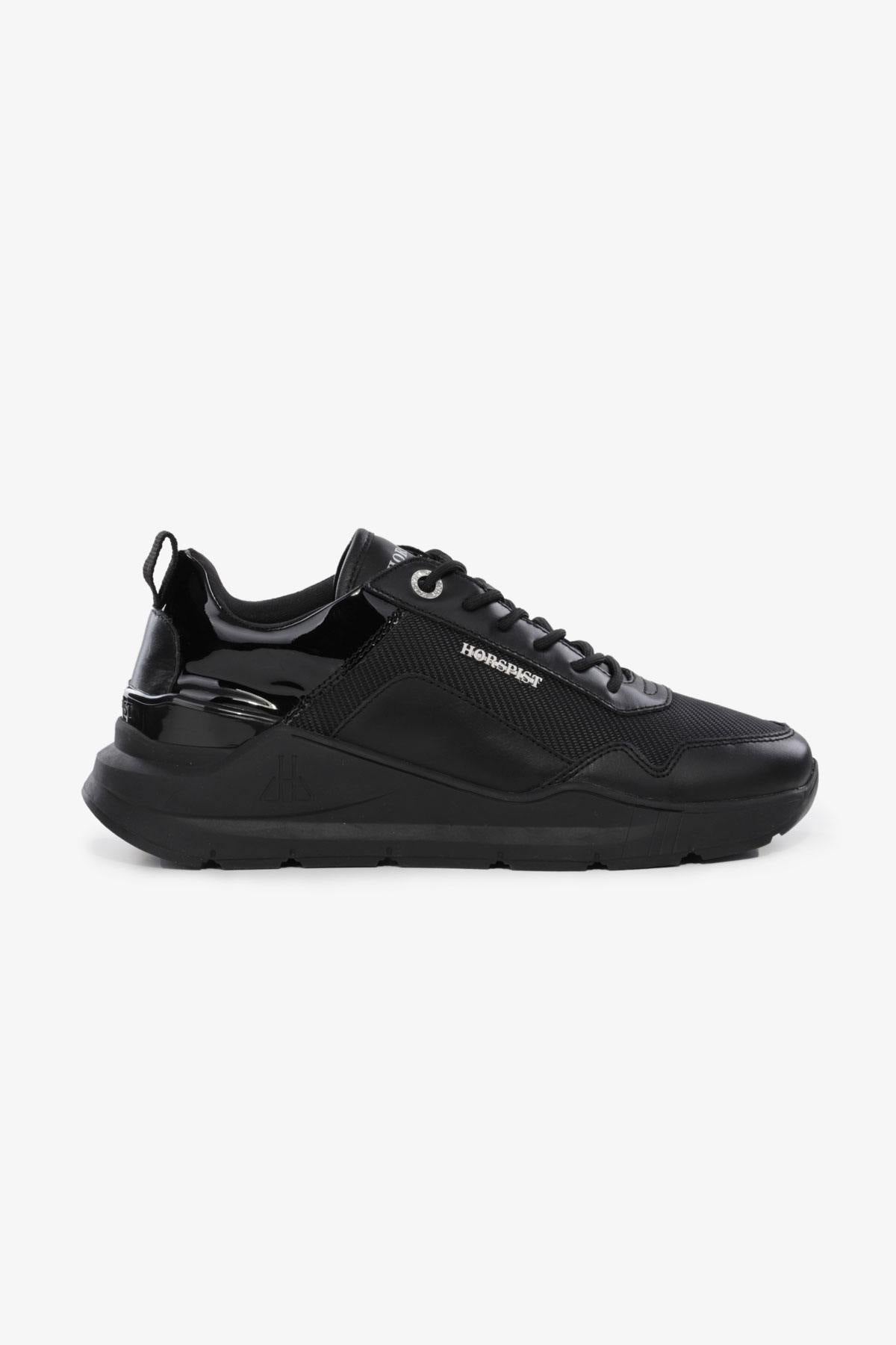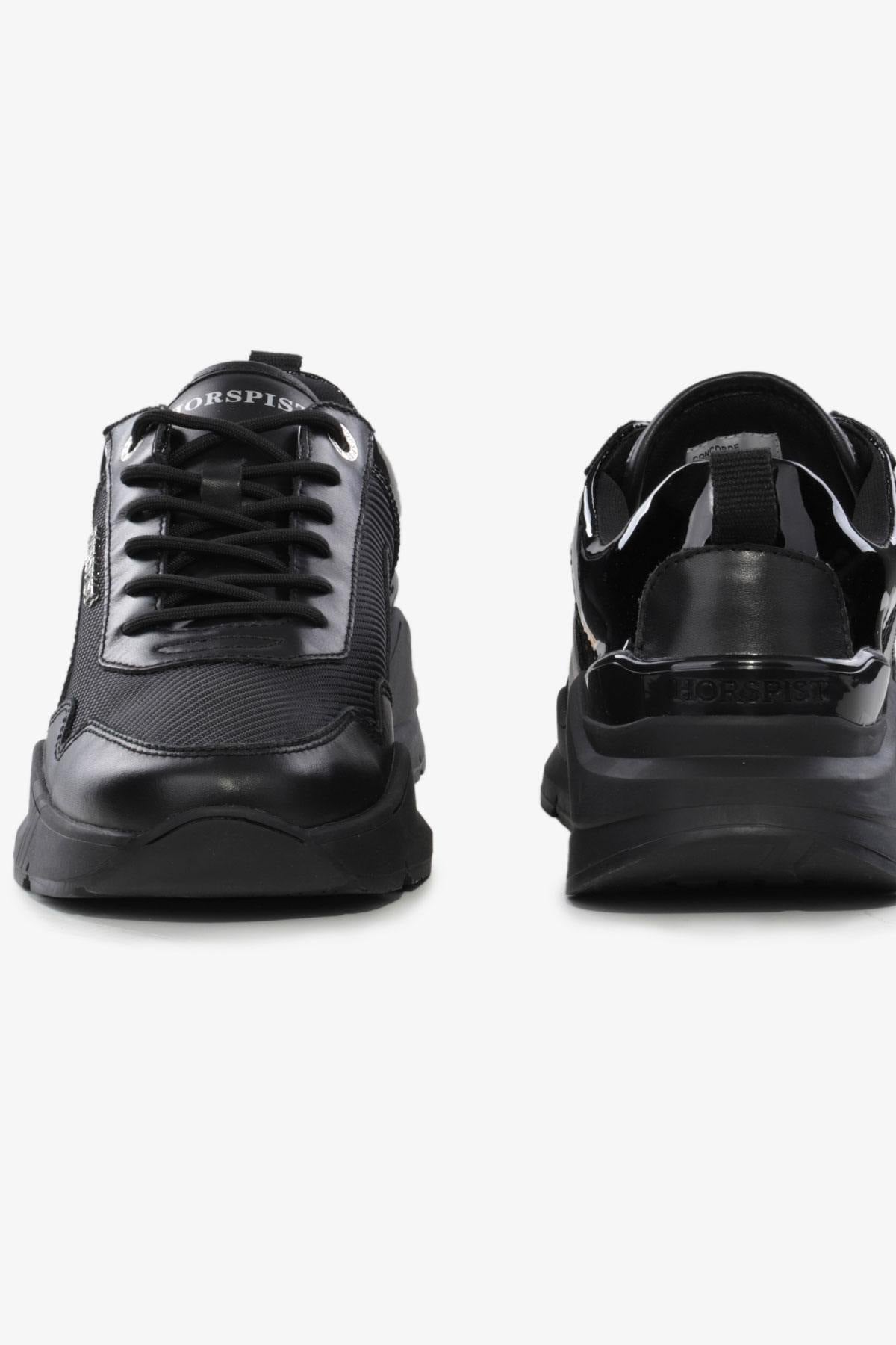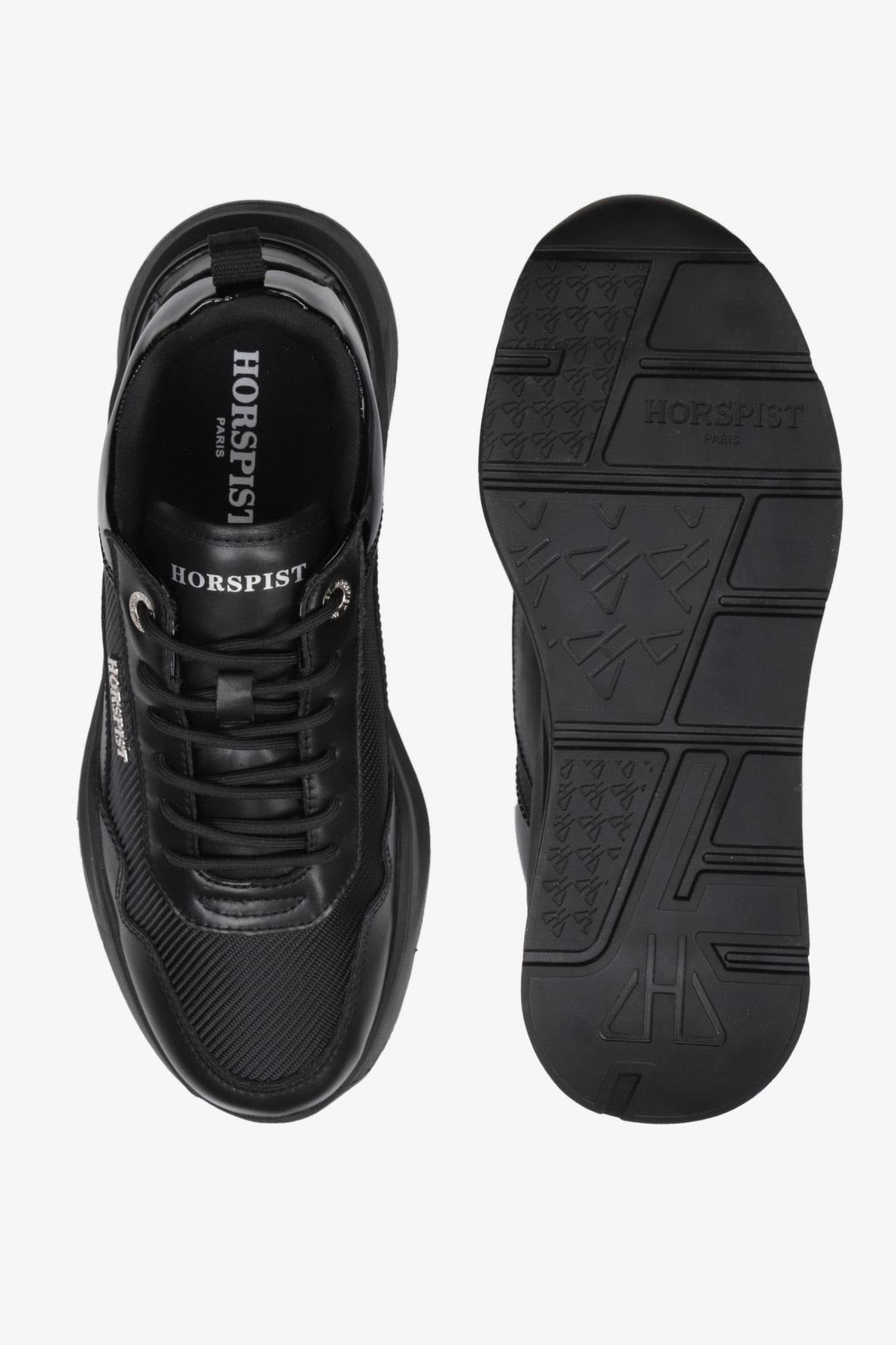 Here, Horspist works on the visual and focuses on very convincing high-end finishes. We cannot remain indifferent to its modern and rebellious total black color. We also like the effective contrast maintained between black and silver. The back of the sneakers is covered with a mesh insert. particularly cute vinyl effect. The laces are round and pass through 6 pairs of eyelets, the last of which, silver, completes an ideal color harmony. The tongue is branded in silver letters. We also find at on the back and on the sole, a relief engraving of the brand. Finally, the silver metallic logo. Horspist is embossed on the side.
