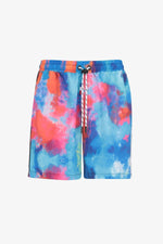 Its printed all over mixing bright colors gives it a classy style enhanced by by the black band flocked with the brand's logo on each side. thighs. The waist is elastic for a good fit. A drawstring is added. to facilitate the adjustment of the waist size according to your desires.