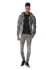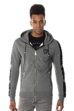 Whether with jogging pants or jeans, this cardigan with cotton and polyester hood is perfect to complete your outfits.