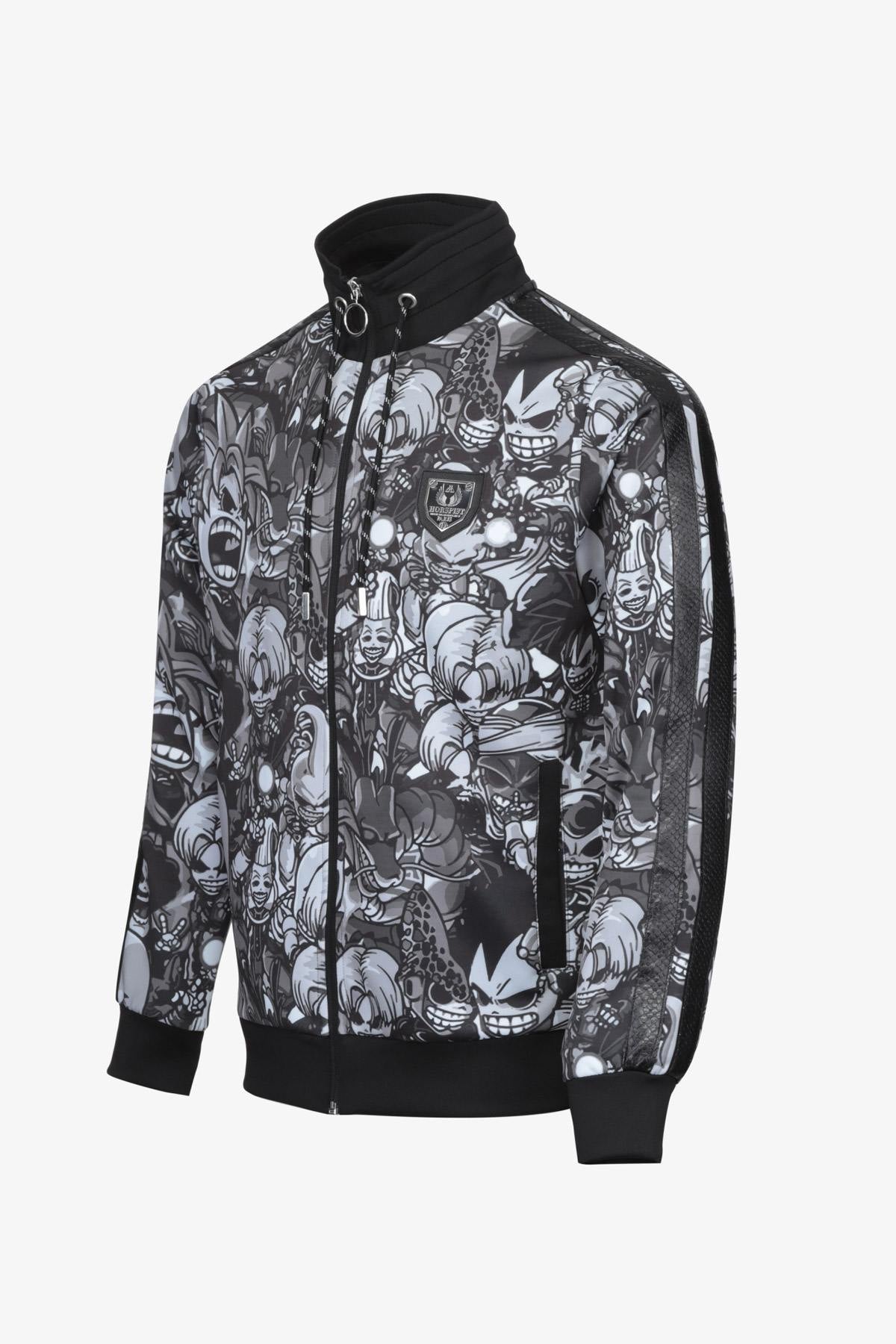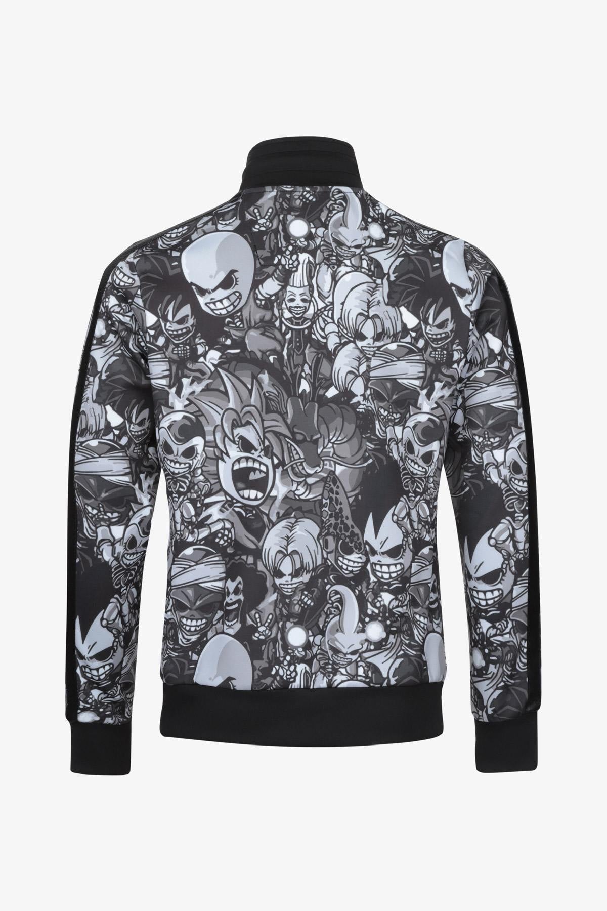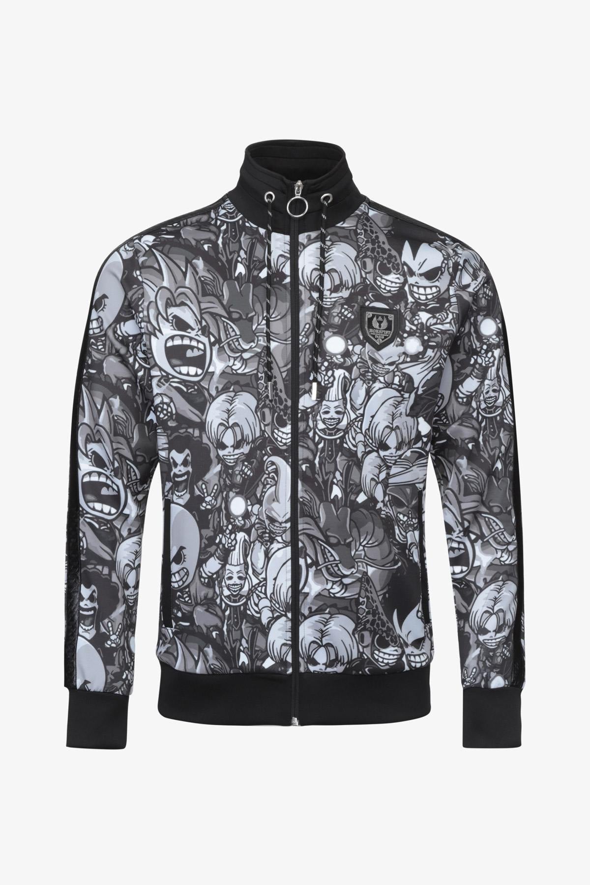 Its high collar has a comfortable fit. with a drawstring, while it closes in the axis with a metal zip. The base and ends of the long sleeves are black ribbed. The original screen printing on the surface of this sweatshirt is simply worthy of the brand's genius. It highlights characters from your favorite mangas represented in an offbeat way. The pair of black reptile skin effect bands sewn along the length of the sleeves enhance the side of the shirt. original of this garment.