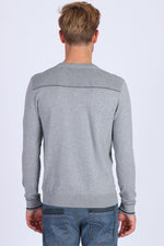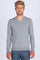 Featuring; With a ribbed V-neck, this sweatshirt has long sleeves, they are also ribbed like the base. Chic blue edging adorns the shoulders and ends of the sleeves. Its light gray mottled color enhances the side sober and elegant of this sweater.