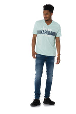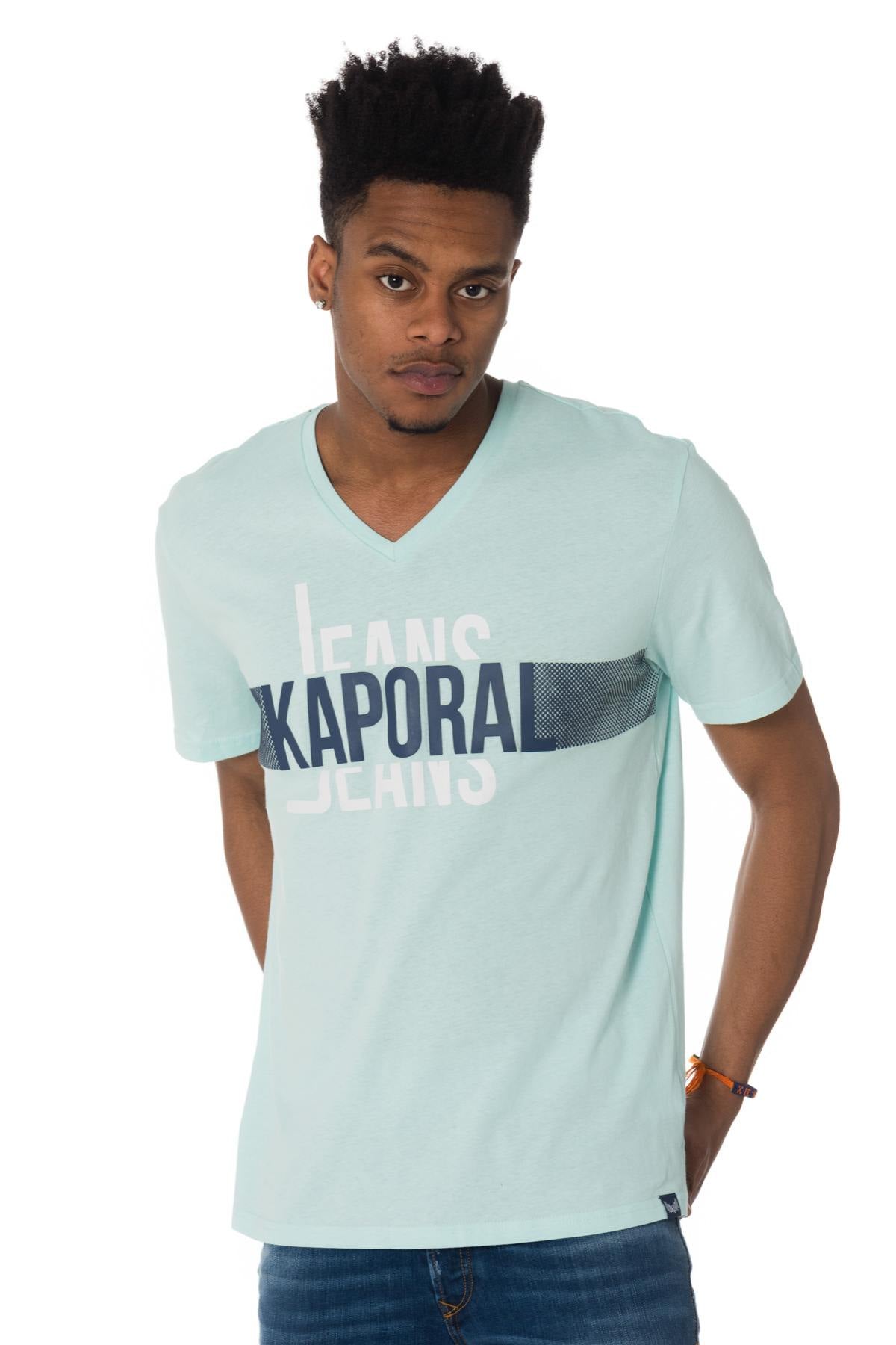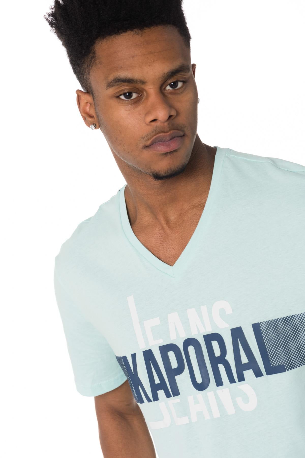 Inscription on the torso "Kaporal Jeans" , it has a V-neck and short sleeves.