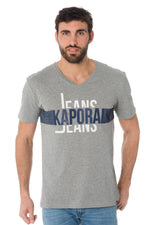 The DELMO MED GRAY MEL is a gray t-shirt, with "Kaporal< flocking /a> Jeans".