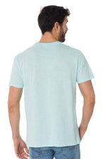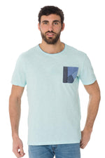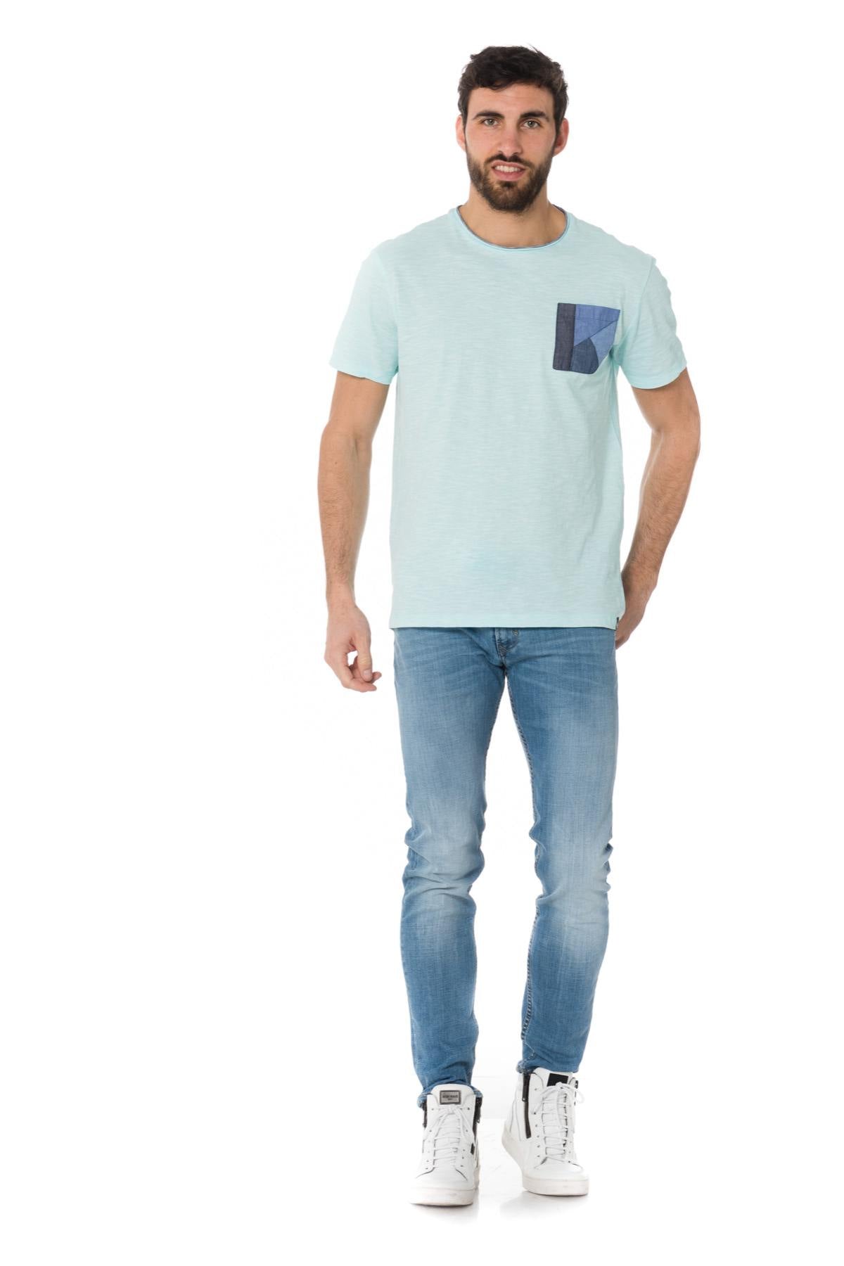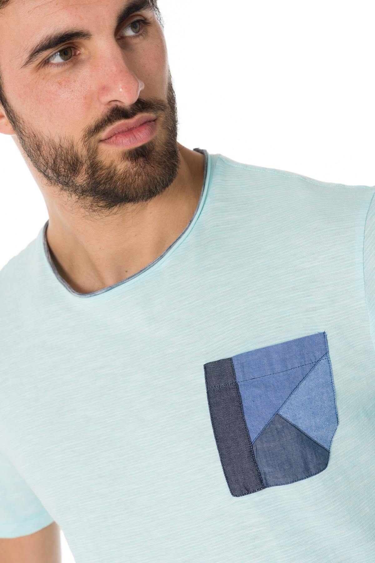 Sky blue t-shirt with sewn chest pocket - Image n°1