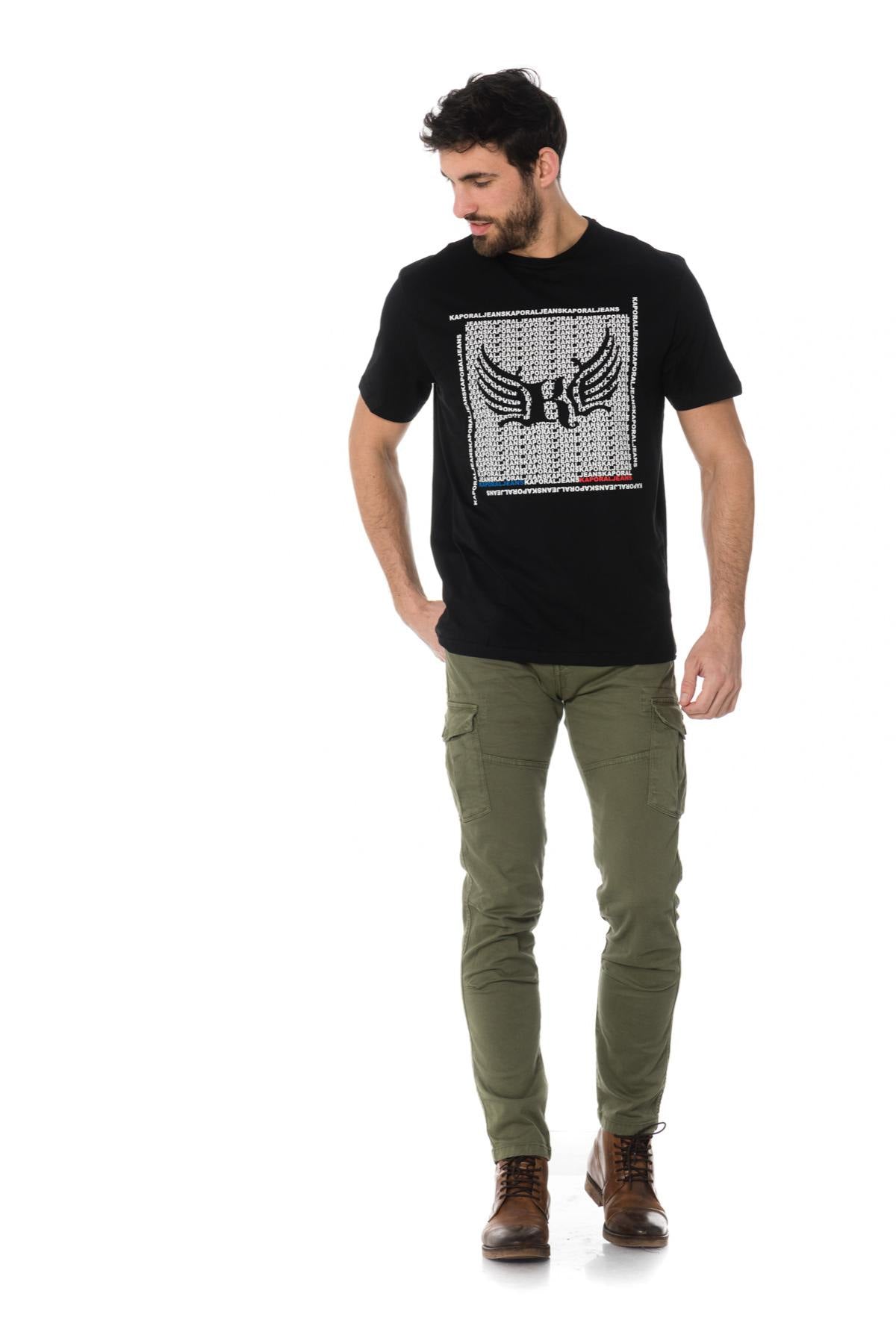 The PASTO BLACK is a cotton t-shirt with modern flocking from the brand KAPORAL.