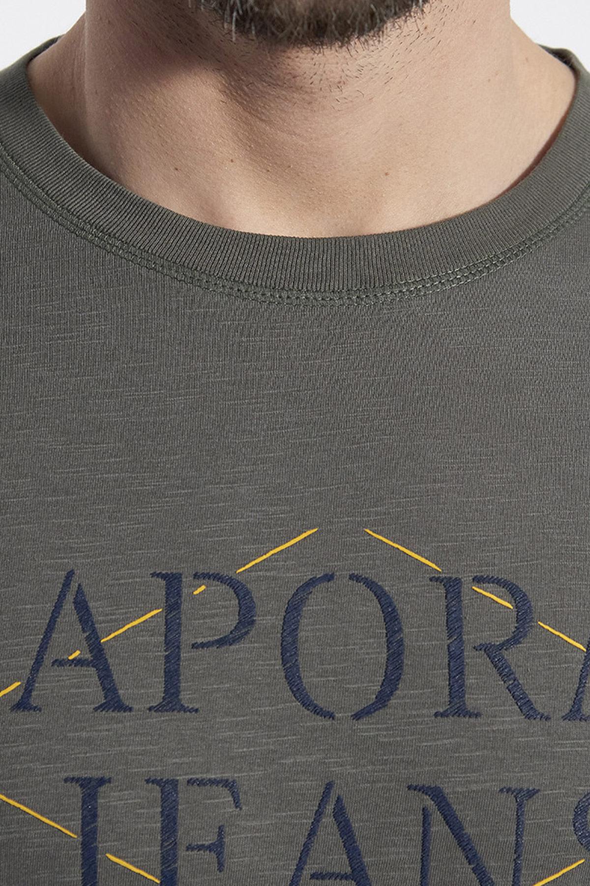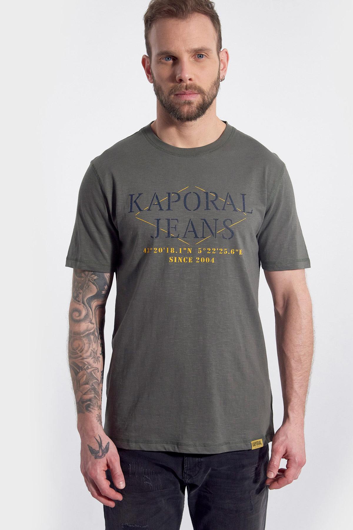 Kaporal Jeans is embroidered. in large letters on the bust just above the geographical coordinates given in military jargon. The round neck is ribbed which ensures good resistance.