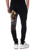The COXJOGG M307 BLACK features a colorful Chinese dragon around the leg. ornate of rhinestones.