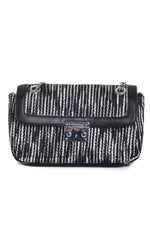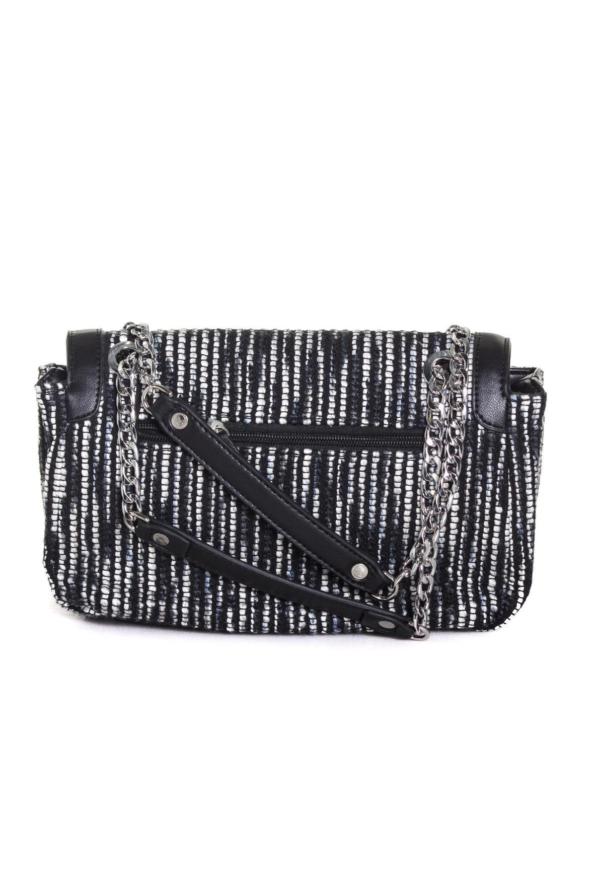 In textured fabric black and white this charming little bag The handbag has 2 handles as well as a removable silver-plated shoulder strap.