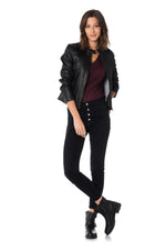 It is a close-fitting cut. The product will be fitted at the waist and the sleeves will be quite tight.<br><br> This type of jacket will be worn more easily open due to its fitted appearance.<br><br> The Slimfit cut is the most widespread among leather clothing, it is the fashionable cut!
