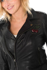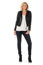 This leather perfecto; the fitted cut will enhance your appearance. wonders your silhouette while bringing to agrave; your look a unique and trendy touch.