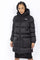 Respecting the standards of a parka, this black jacket arrives at a comfortable fit. mid-height of the thighs and is padded to protect you efficiently and effectively from the bad weather of the winter period. It closes in the axis with a long metal zip and the high collar is lined. a large hood with an elastic drawstring. Elastic as well as the ends of the long sleeves. Two raglan pockets with press studs are placed at chest level, while two other pockets are attached to the chest. flap are present underneath. The brand name is printed on the label. in white on the side left chest.