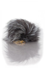 Oakwood offers a key ring in rabbit fur, very soft to the touch, with a chain, a carabiner and a gold-colored metal tassel.