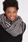 Very large, it will wrap around your entire neck while covering your shoulders. An excellent ally when you find yourself in an unexpected situation and the cold begins to set in. to be intense. Its surface is flocked with a floral print. black and white patterns. The brand's metal logo is plated on the back. Discreetly on one of the ends.