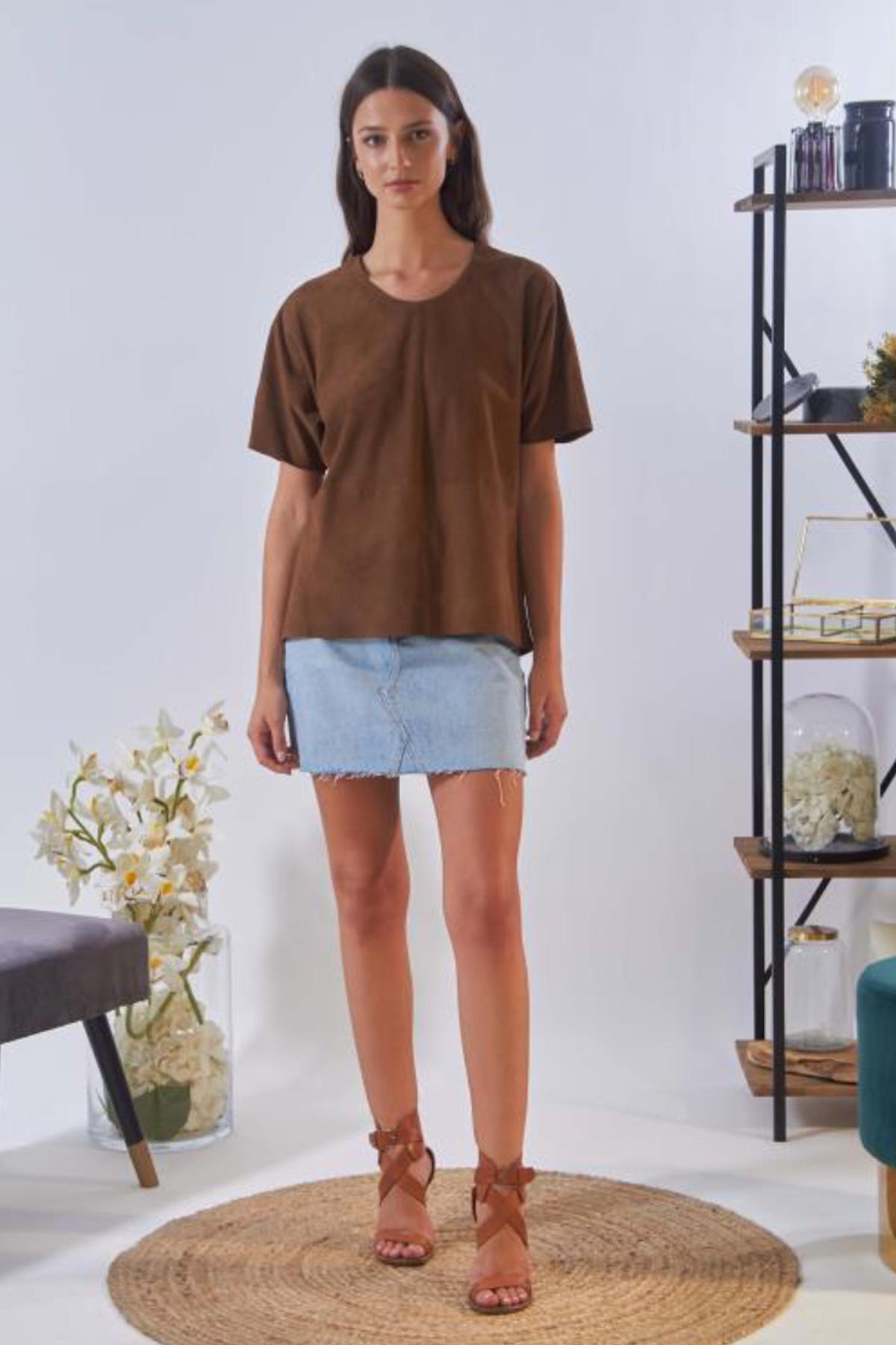 Women's Tee Shirt Oakwood ANGELINA GOAT SUEDE COGNAC 507