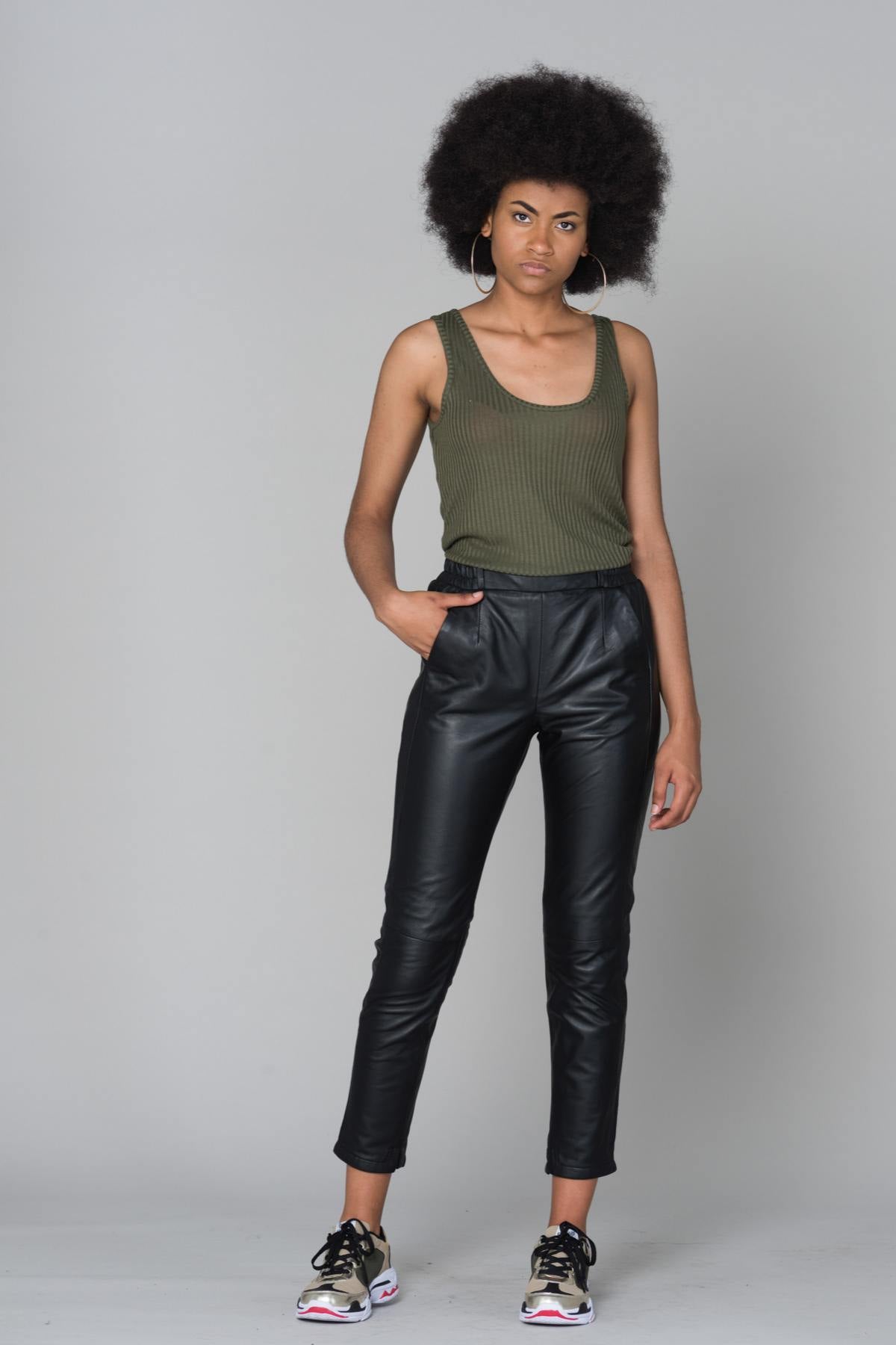 Magnificent sheepskin leather pants from the brand OAKWOOD, the BELLISSIMA BLACK 501.