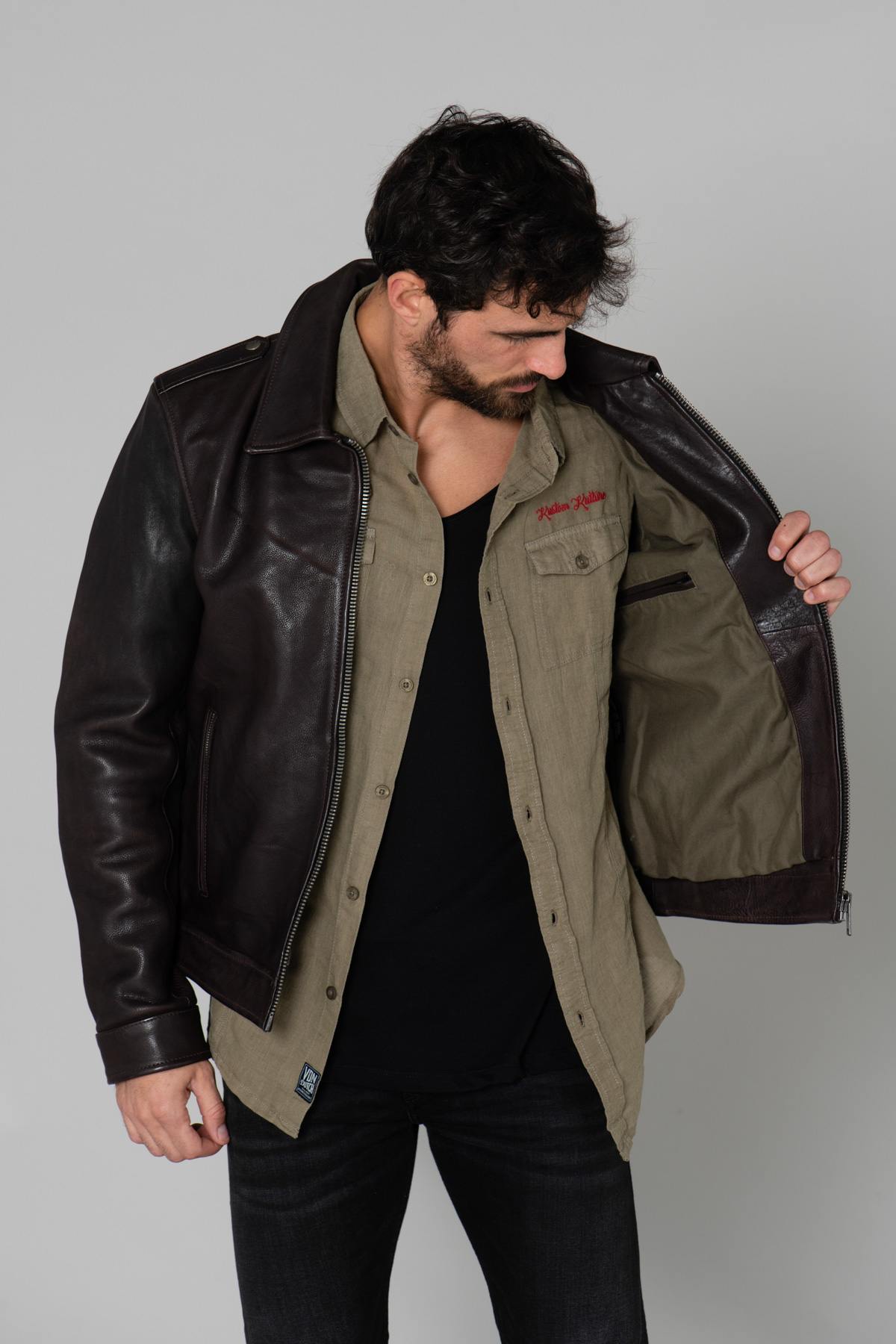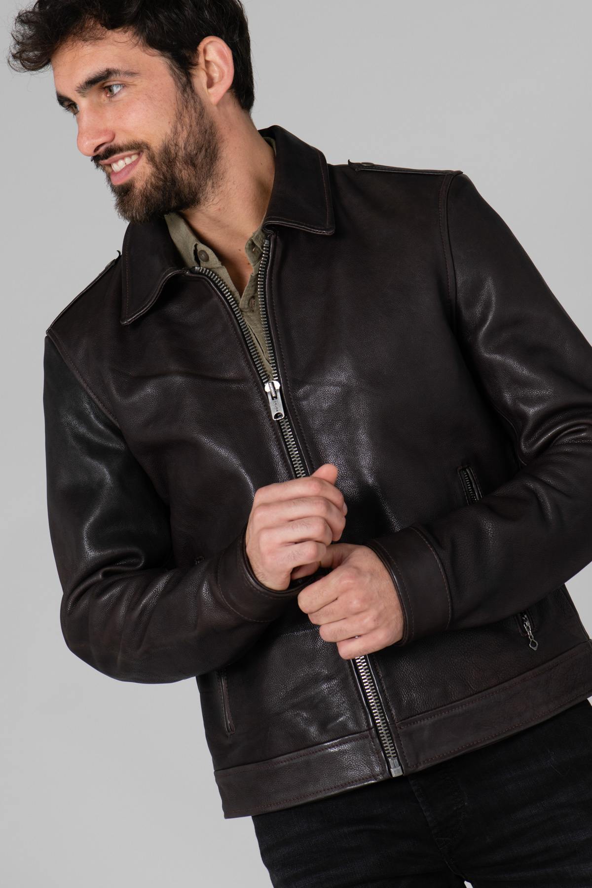 Sweat all possible styles with this ZACH COW VEG THUNDER DARK BROWN ZZ men's jacket. This A2 jacket is made in cowhide leather available in regular cut. The simplicity of...