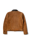 A rugged and authentic men's trucker jacket, the Lonestar by Master Supply Co. is crafted from full-grain cowhide in raw brown with a contrasting full-grain buffalo leather collar in dark brown for a distinctive vintage look.