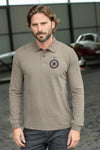 Long sleeve cotton polo shirt with heart badge - Image n°1