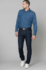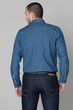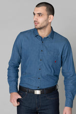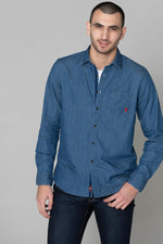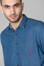 Blue denim shirt with pocket - Image n°1