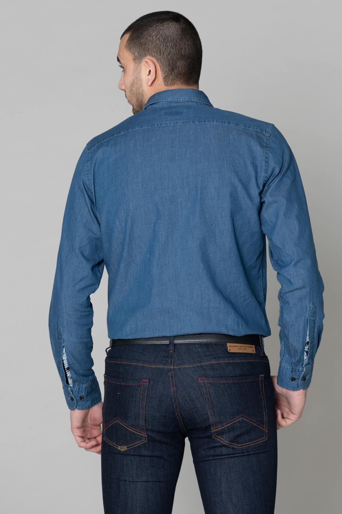 Blue denim shirt with pocket - Image n°3