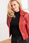 This ultra trendy jacket is very stylish. will put your figure in the spotlight, thanks to an absolutely unstoppable slimfit cut. The vegetable-based sheepskin leather construction nods to the style. the planet by wanting to be eco-responsible. The classic performance style that gives a modern side rebel to the jacket adds character to your outfit. this glamorous piece. The notched collar is animated silver decorative pressures. The asymmetric zipped closure is accompanied by a zipped chest pocket and two lower zipped pockets for hand comfort. The zips on the cuffs are comfort gussets which make the jacket even more pleasant to wear. to carry. There is also a hidden smartphone-sized pocket in the lining.