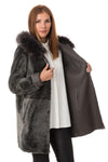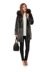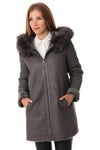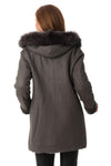 The MAXINE TAUPE is sublimated to its original appearance. by a thick raccoon fur removable with buttons.