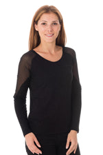 Round collar and long sleeves.