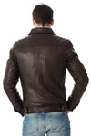Brown leather shirt collar jacket - Image n°4