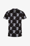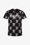 Black in color, it has a collar round and short sleeves. Its entire surface is printed with white masks. like Jason Voorhees in the horror film Friday the 13th. They are connected by a sort of barbed wire which enhances the side of the screen. appalling of this flocking. The brand name and city of origin are printed in large white format on the chest, while the brand badge is sewn on the back, just below the collar.