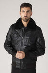 Discover the LEGION ALPHA BLACK men's bomber jacket from Redskins, an autumn-winter aviator style model, in black sheepskin with a fur collar for a sophisticated and authentic look.