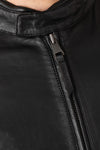 Black leather jacket with biker collar and stitching on the sides - Image n°5