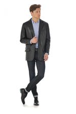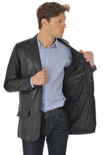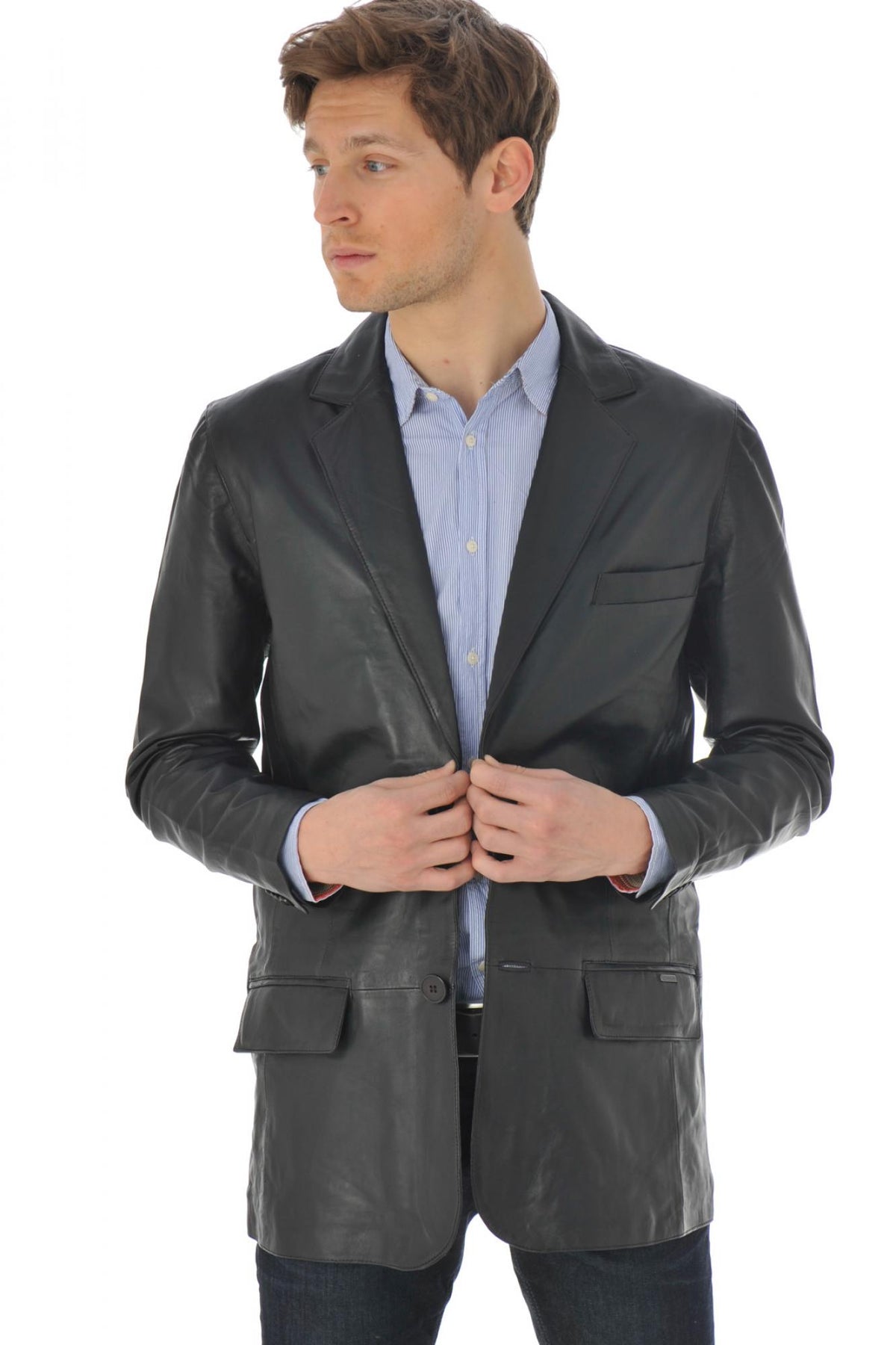This black blazer in sheepskin leather and polyester lining, is a timeless ; absolutely have in your wardrobe.