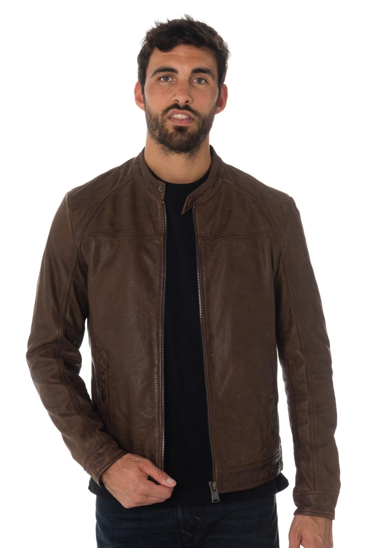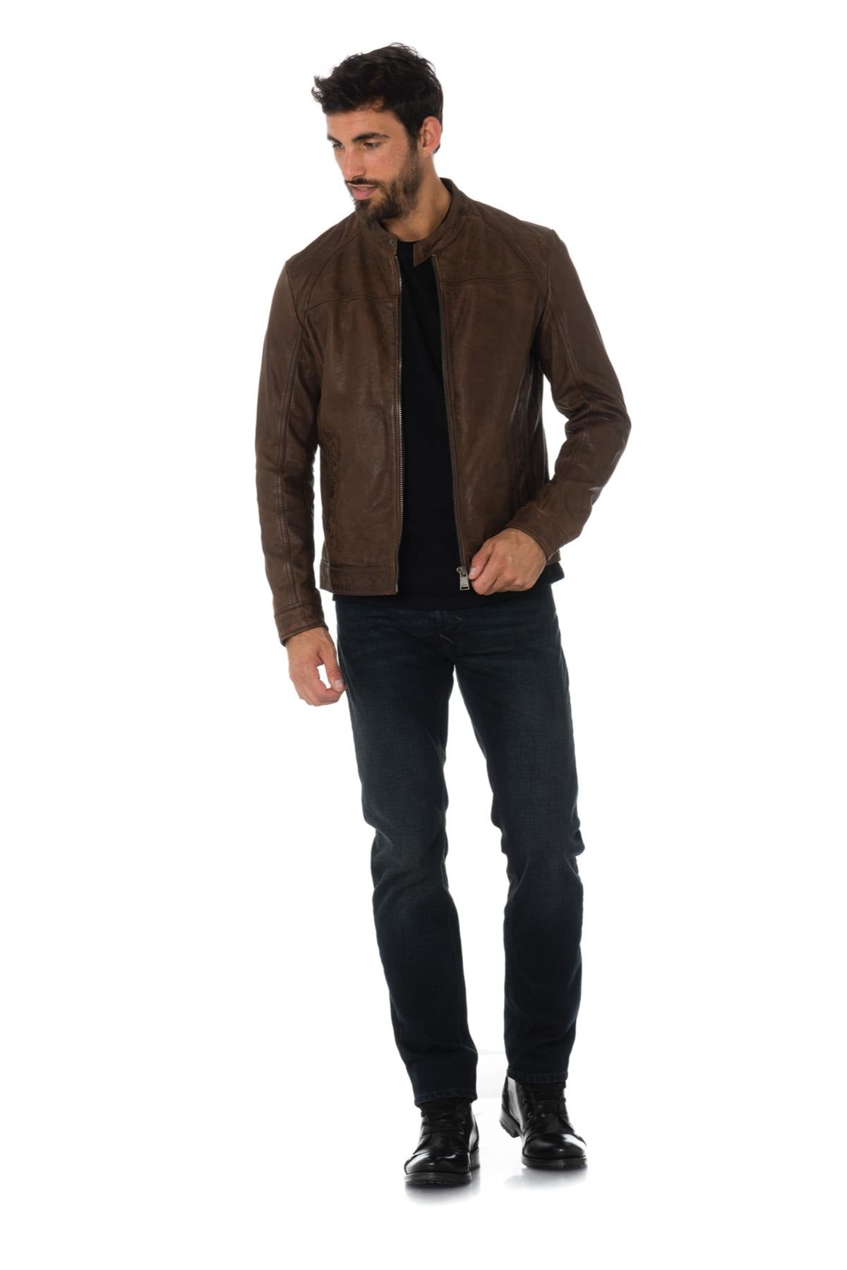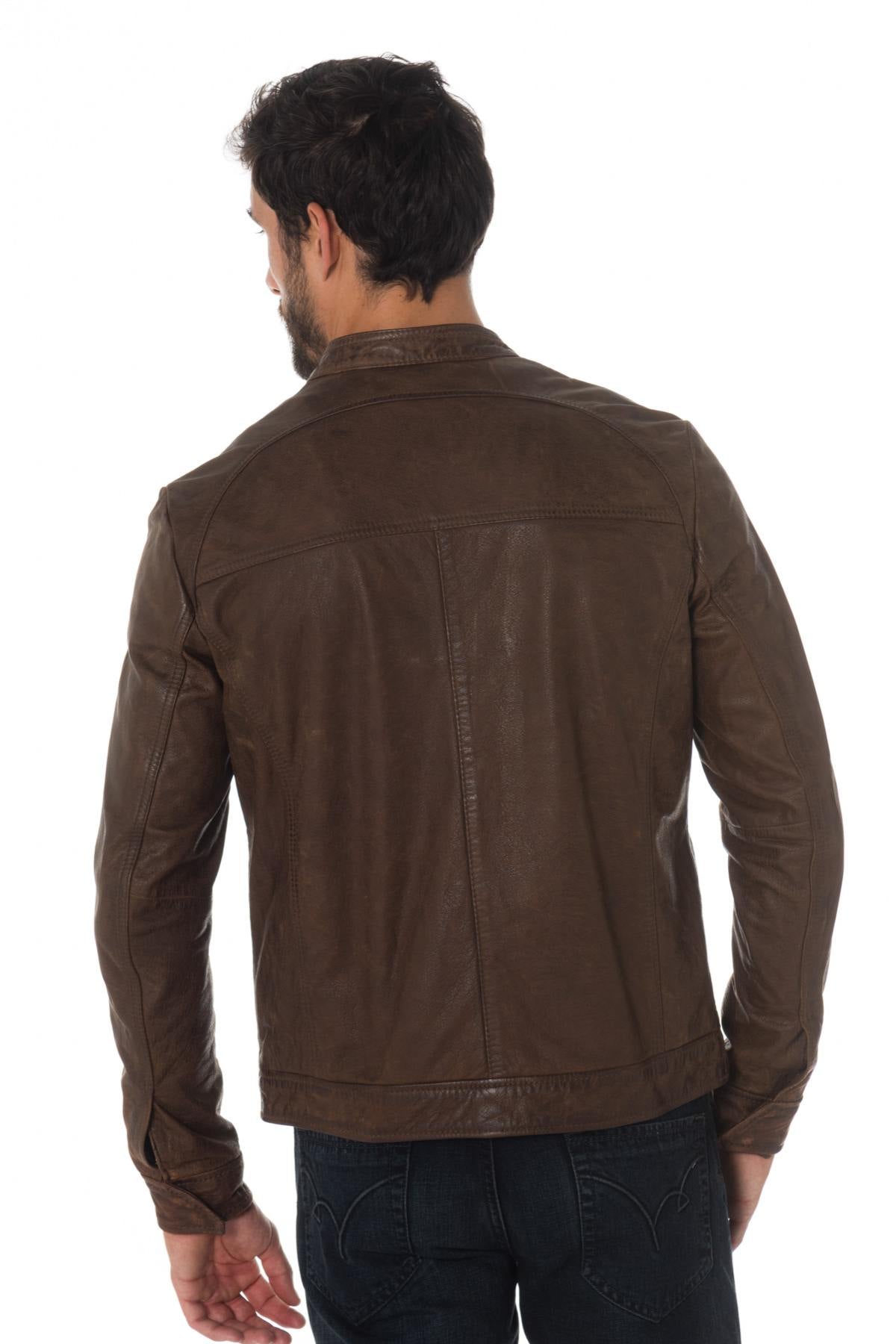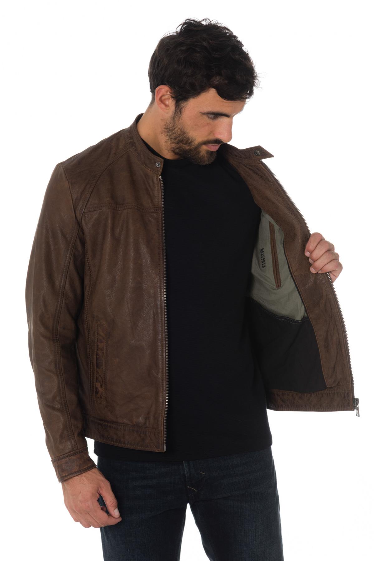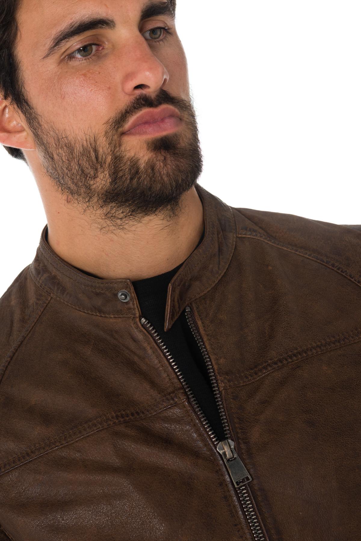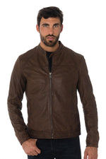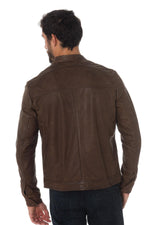 The KINGSTON BROWN is a jacket with very sober biker collar highlighted by a very current aged brown color.