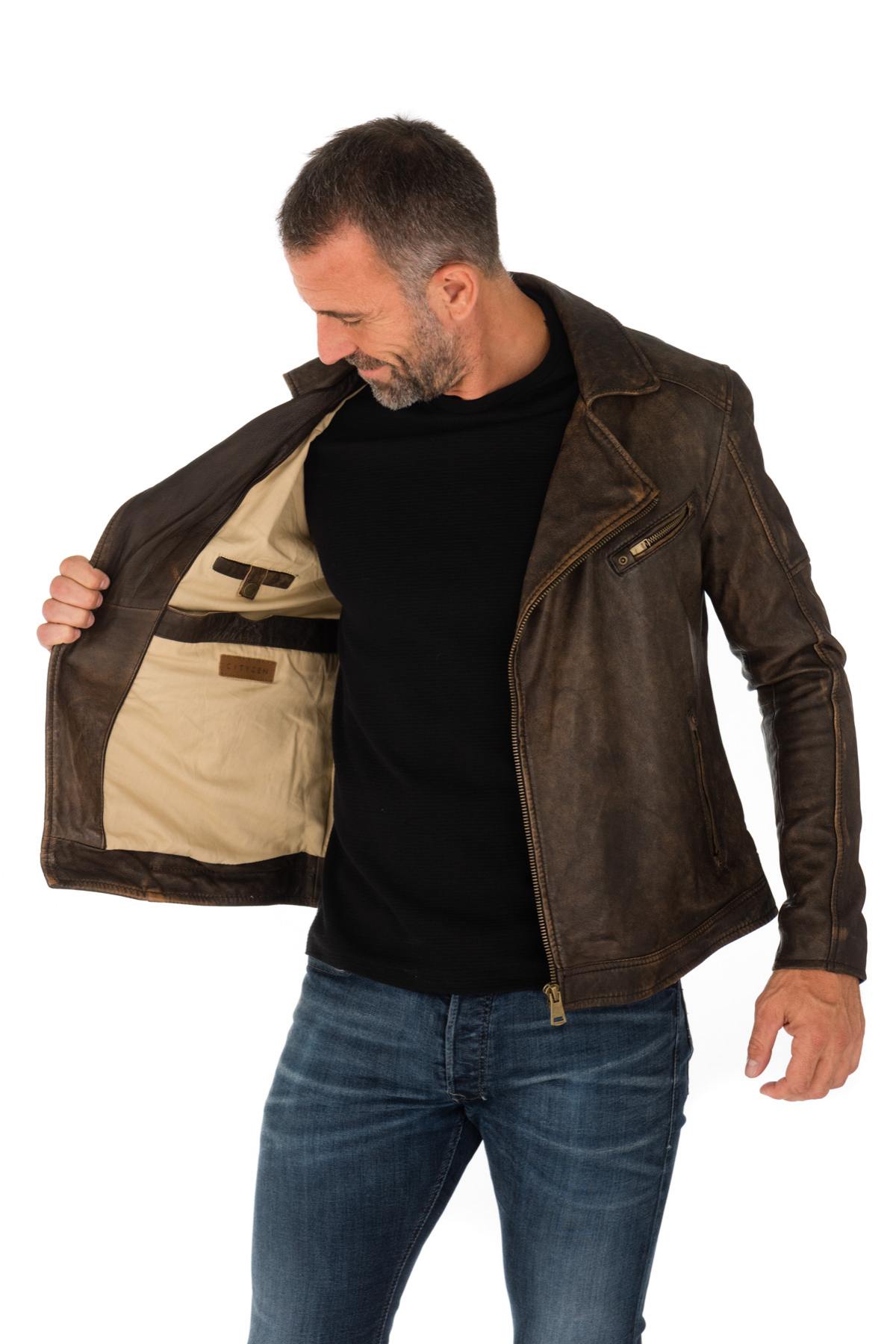 With its aged appearance, the LEO BROWN perfecto jacket has a very trendy vintage look.