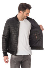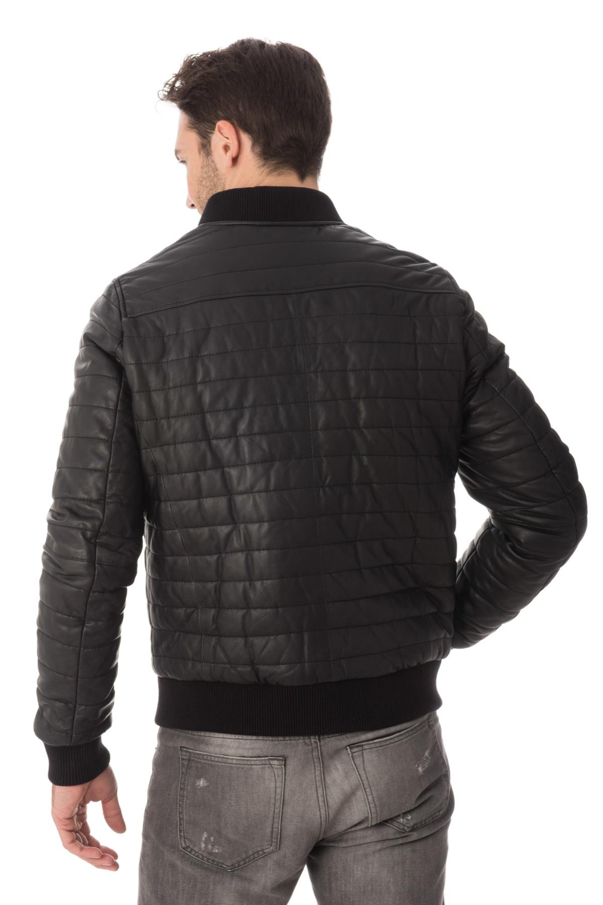 p>Exterior of the jacket in quilted effect sheepskin leather. very flexible.