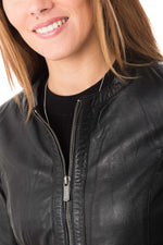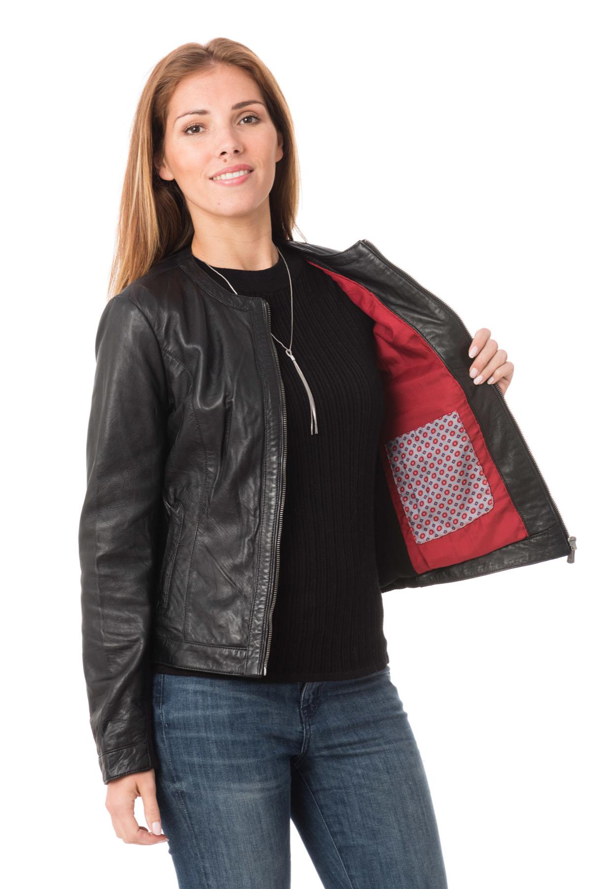 This leather jacket with round collar is a great classic and is very easy to wear. grant.