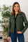 Women's dark green leather jacket with asymmetrical collar - Image n°1