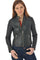 Biker look with its round collar with snap and its quilting at the shoulders, it still remains very feminine thanks to its design. its slimfit cut which fits your body perfectly.