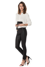 Cowskin leather and black polyester lining white polka dots, it is very practical with its 3 compartments, its zipped pocket and its 4 card slots.