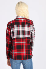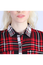Checked, this red shirt is simply chic. Black and white colors arranged... and there over the entire surface succeed in give it an exceptional result. Two large pockets are present on each side of the bag. of the chest. A single button placket secures this shirt. The base is rounded which gives it a proven charm.