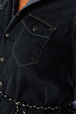 Pressure button fastening and black and silver braided belt with adjustable straps. the size.