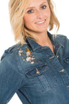 The KARM FREEZ is a superb denim playsuit embellished with leather. embroidery on the chest and on the bottom of the shorts.